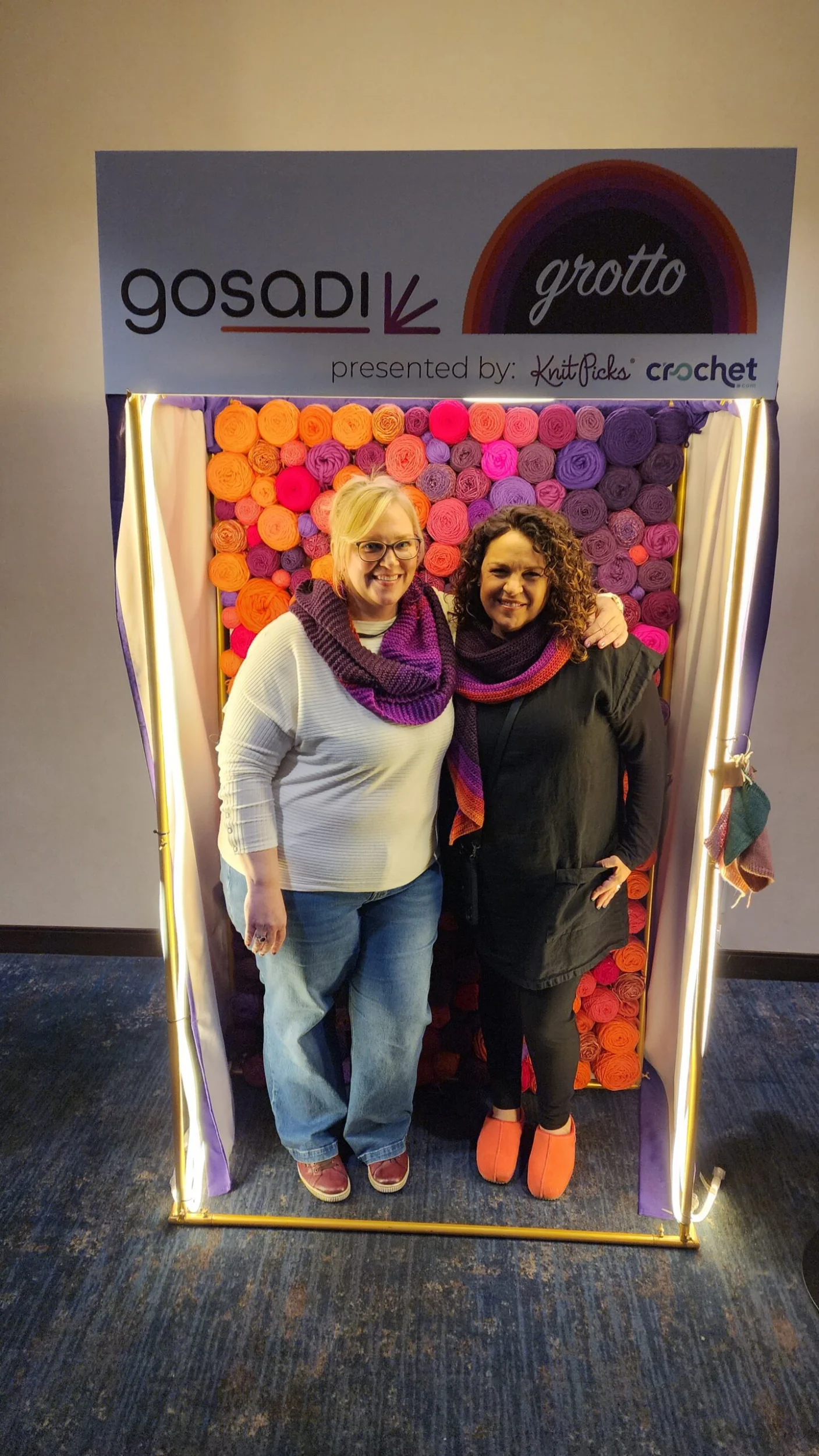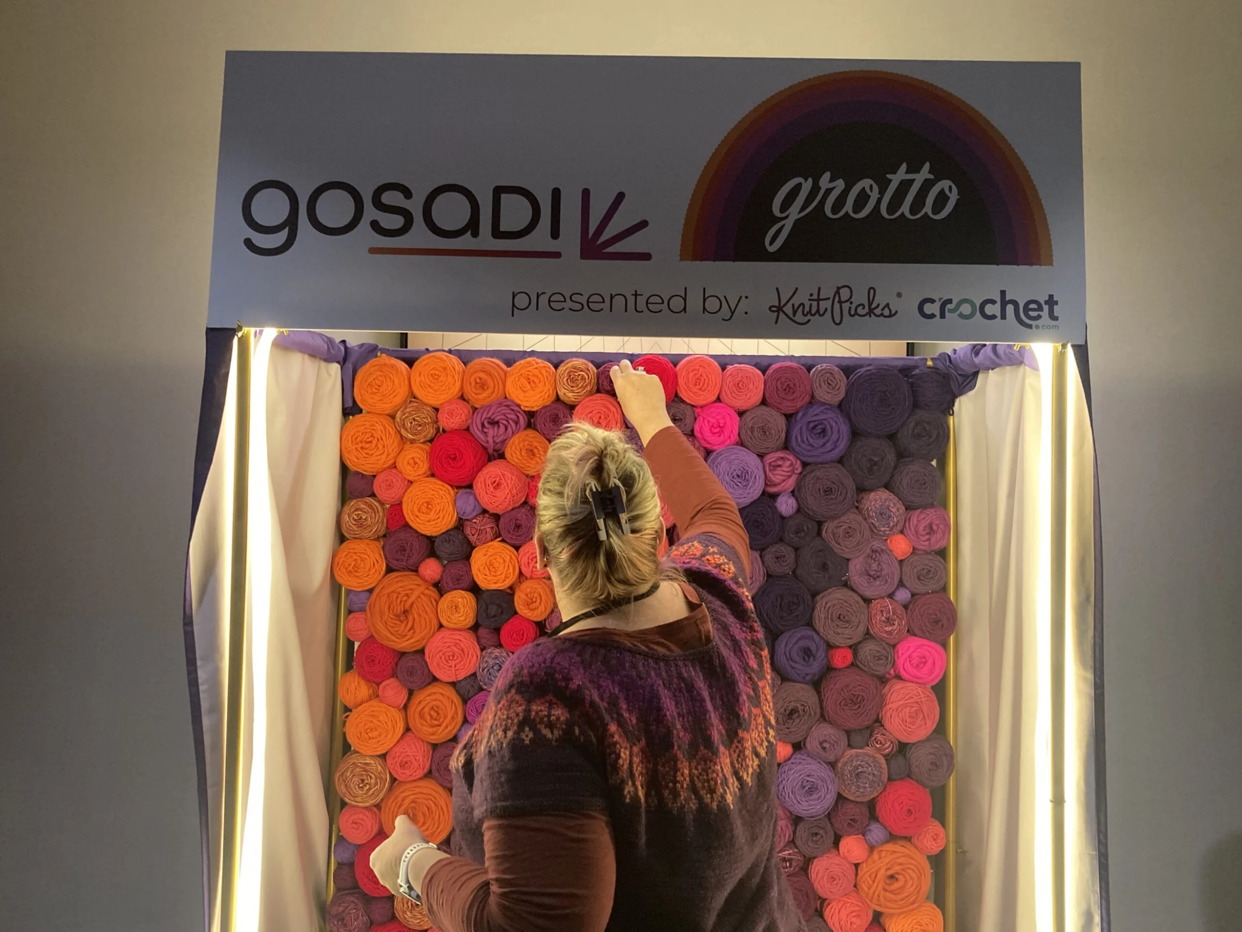 One of the highlights of our trip was the creation of the gosadi Grotto, a photo op made in collaboration with Knit Picks and We Crochet Yarns, and our Designer Showcase of patterns from the gosadi community of designers. Both setups were a labor of love, with all hands on deck to bring the yarn grotto and designer showcase to life.