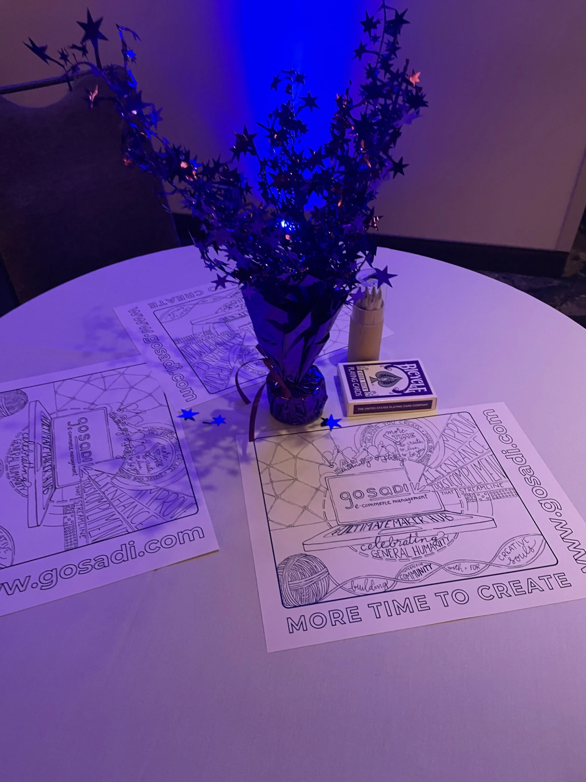 One of the highlights (and our favorite things of the night) was the custom coloring pages created for us with the help of our friend Vita Pascone, The HeARTIST. She spent time with Michele and was able to truly capture the heart of what gosadi is about: this creative community and then put that into a special treat for our event guests.