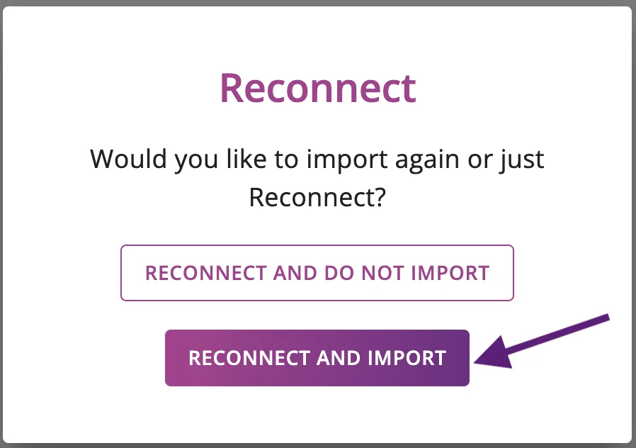 Click “Reconnect” and then select “Reconnect and Import.”