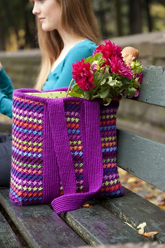 Discover stylish knitted bag patterns including totes, market bags, and purses.